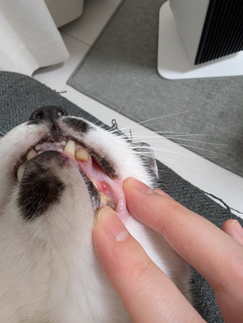 約1ヶ月半前頃より口があいており、舌が出ている状態が多く、約1ヶ月前頃から右下顎が見て分かる程度に腫れてきました。よだれの臭いがきつくなり、カリカリご飯も食べにくいのか食事摂取量も減ってきたため、病... 続きを見る