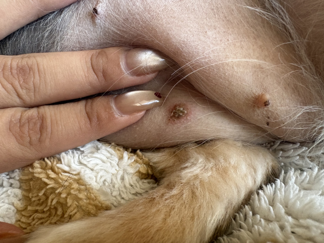 4月26日生まれミニチュア女の子です。7月8日〔前日にブリーダーから引取〕夜に乳首あたりと左脇あたり1箇所ずつ薄い色のかさぶたがありました。日に日に黒くなり1かさぶたも硬くなりました。人間と同じ様に自然に... 続きを見る