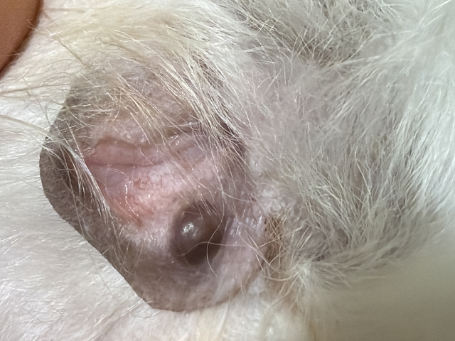 ホクロみたいなのがある 質問カテゴリ: 皮膚の異常 対象ペット: 犬 / チワワ×マルチーズ / 女の子 / 1歳 4ヵ月 質問者: 埼玉県 / るなさん 2026/01/07 13:50 いつ頃からあるのかは分からないのですが、たまたまブラッシングをしている時に気づきました。 すこしもりあがっている感じがあるのですが、色素沈着なのかデキモノなのか気になります。