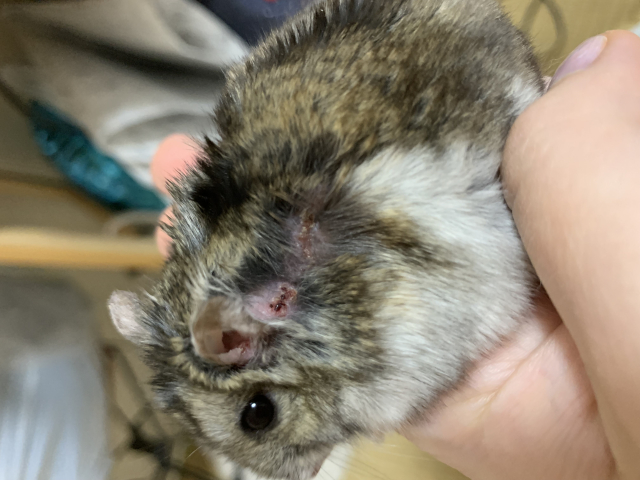 皮膚トラブル(かさぶた、抜け毛)について。受診すべきか。 質問カテゴリ: 皮膚の異常 対象ペット: その他 / ジャンガリアンハムスター / 女の子 / 2歳 3ヵ月 質問者: --- / 非公開中の会員 2026/01/26 21:58 ジャンガリアンハムスター (2歳3ヶ月、メス、46g) 生後半年を過ぎた頃から、2〜3mmほどのかさぶたが頻発しています。 一度受診したことがありますが(視診、触診)、悪性ではないとのことで返されました。 2ヶ月程前から徐々にかさぶたが大きくなってきて、抜け毛も増えてきました。範囲は10mm×3mmほどで、湿ってはいません。 再受診も検討していますが、 ・高齢のため通院のストレスが心配であること ・食欲や体重には異変がないこと ・本人は痛がっている様子がないこと ・悪性ではないのならそっとしておいてあげたい などの理由で悩んでおります。 アドバイスをお願いしたいです。