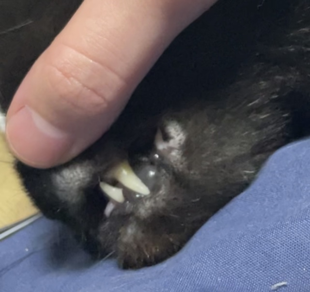 一週間ほど前に口の片側のみよだれで濡れていることがあり、確認すると画像のような腫れ?を発見しました。