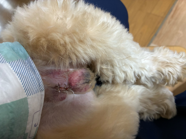 去勢手術が3/28(土)に終わり、清潔に保っていたつもりですが、どうしても赤みが気になります。
